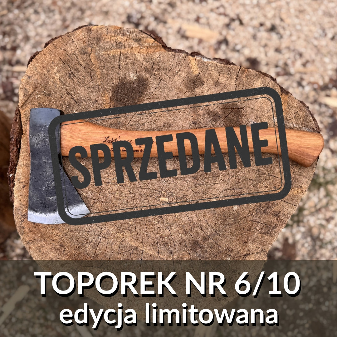 Rękojeść tego toporka nie pochodzi z marketu. To drewno przeleżało swoje. Wyschnięte, spokojne, gotowe na drugie życie. Romek potrafi rozpoznać, kiedy coś „ma charakter” – i takie właśnie drewno trafiło do tego egzemplarza, a kowale z Dębowej Kuźni wiedzieli, co z nim zrobić. Nie śpieszyli się, nie traktowali go jak kolejnego zwykłego projektu. To był materiał z duszą – i powstało z niego narzędzie, które będzie z Tobą przez lata.